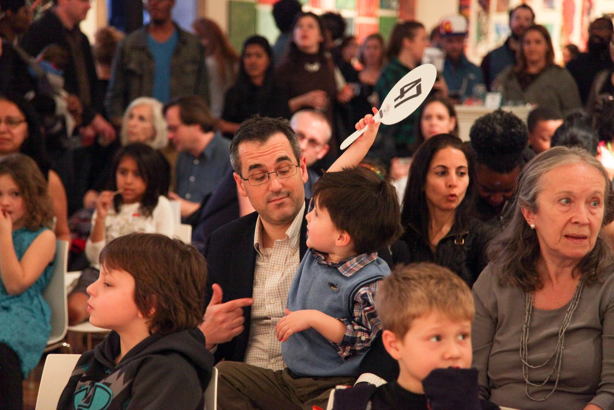 And by here, I mean standing in the North gallery at the American Academy of Arts and Letters lit by a glass ceiling surrounded by over 100 professionally framed pieces of artwork created by artists between the ages of 18 months and 50 years old. By here, I mean in an almost hundred-year-old building in Manhattan once frequented by members including Kurt Vonnegut, Mark Twain, and F. Scott Fitzgerald with 8-10 year olds working the floor as art dealers as elementary school musicians play in the background. By here, I mean raising thousands of dollars so that we can offer a stellar art educational experience to those who may not have had access to it otherwise.